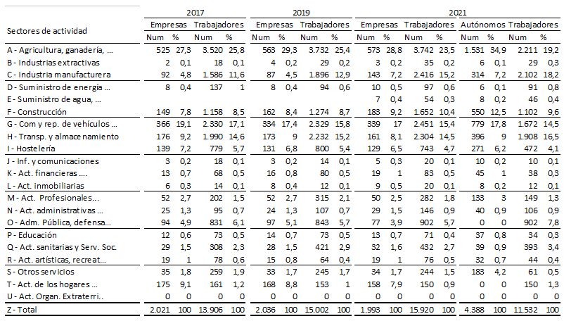 El sector del comercio en general y la reparación de vehículos, con un 17% de las empresas y un 15% del total de trabajadores, es el segundo subsector en importancia, seguido de la construcción que alcanza un 9% de las empresas y un10% de los trabajadores.